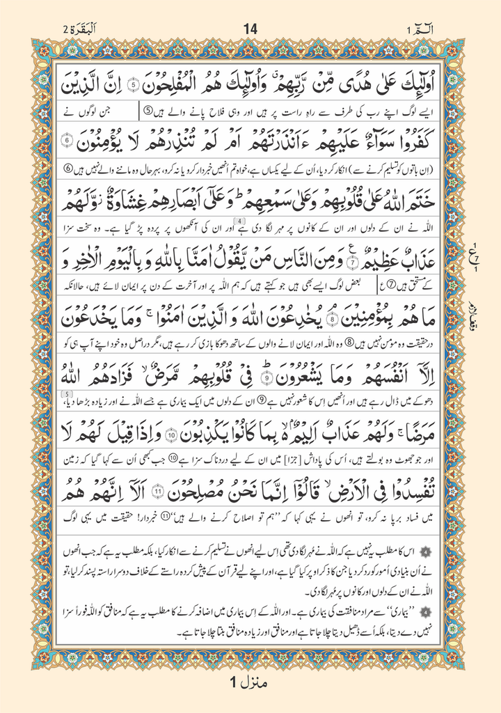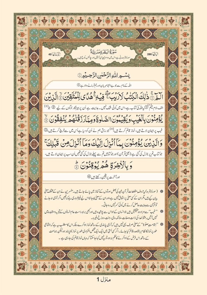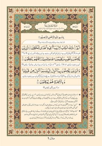 Our most premium Quran till date, this Quran has been designed keeping our customers comfort and convenience in mind, with attention to detail The Quran with its vibrant colors makes it as visually appeasing as reading off a digital screen while its bold sized fonts of Arabic make it easier for our customers to read along with the feature of its translation between the lines and a short explanation in the footnotes.